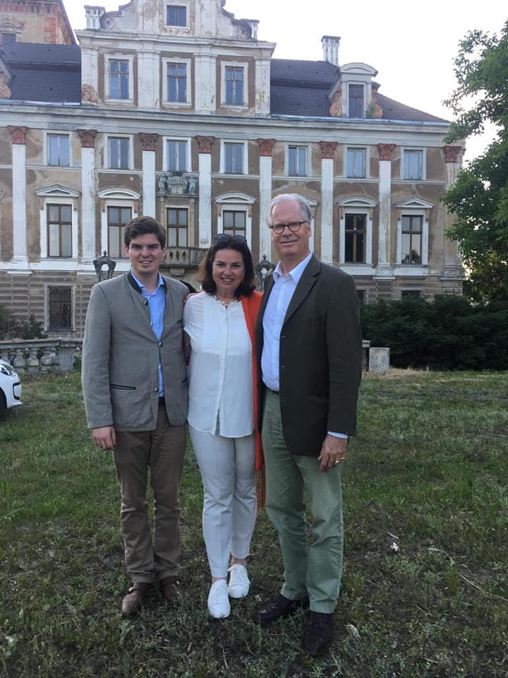 : Na Zamku w Roztoce mieliśmy zaszczyt gościć dziedzica rodu von Hochberg – hrabiego Petera wraz z małżonką hrabiną Anne i młodszym synem Albrechtem. Zacni goście zwiedzili rezydencję należącą do 1945 roku do ich rodziny oraz zapoznali się z planami rewitalizacji zamku i ogrodu.