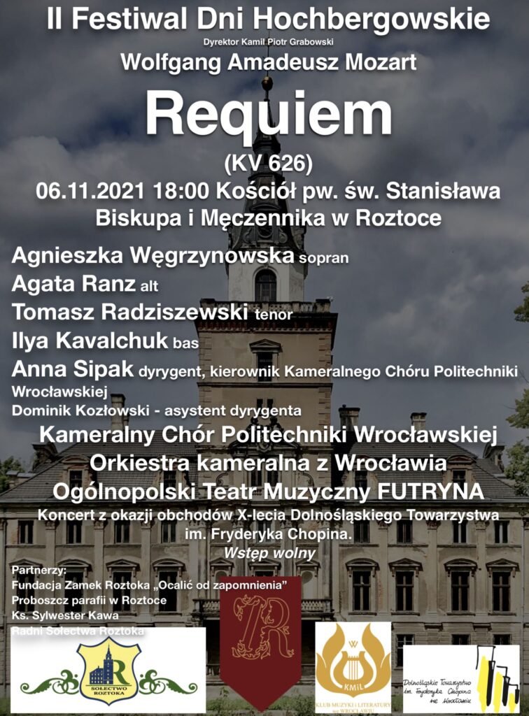 Współorganizatorem wydarzenia jest Dolnośląskie Towarzystwo im. Fryderyka Chopina, które w tym roku świętuje X-lecie swojej działalności. To duże i wyjątkowe dla regionu wydarzenie w ramach II Festiwalu Dni Hochbergowskie stanowi formę oddania hołdu wszystkim tym, którym nie było dane dotrwać do końca czasu pandemii.