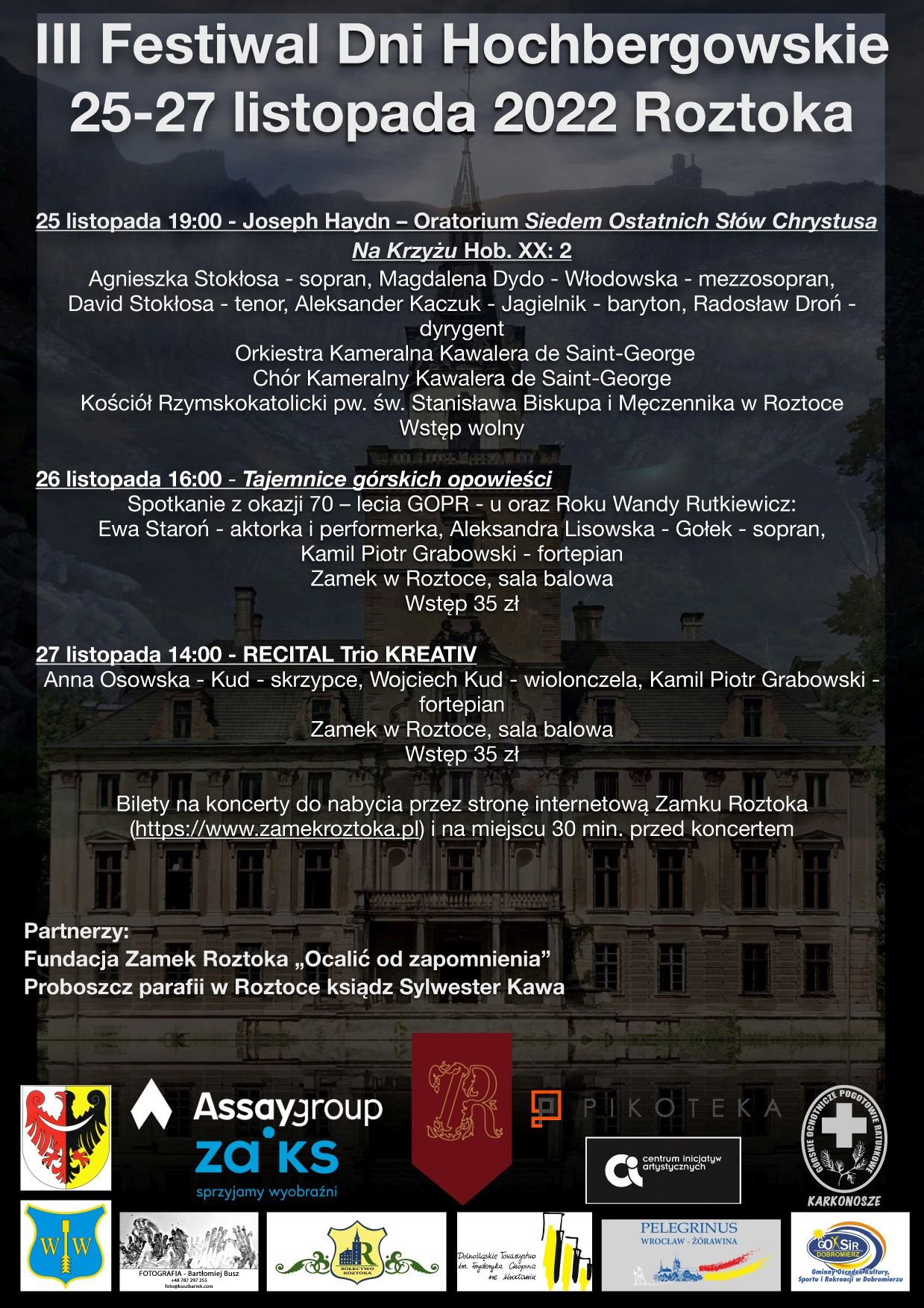 III Festiwal Dni Hochbergowskie https://achiv.org/iii-festiwal-dni-hochbergowskie/ Mon, 07 Nov 2022 12:06:04 +0000 https://achiv.org/?p=2575 25 listopada 19:00 Inauguracja Festiwalu – Joseph Haydn – Oratorium Siedem Ostatnich Słów Chrystusa