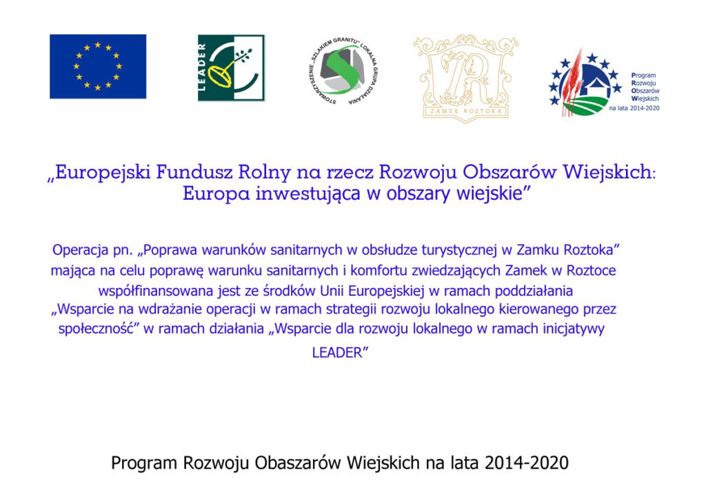 Zakończono remont łazienek publicznych w Zamku Roztoka. Remont był możliwy dzięki środkom Unii Europejskiej i finansowaniu z Programu Rozwoju Obszarów Wiejskich na lata 2014-2020. Przywrócenie do użytkowania zdewastowanych łazienek było warunkiem koniecznym, aby w Zamku w Roztoce mógł funkcjonować ruch turystyczny, a także by mogły odbywać się tu wydarzenia kulturalne. W trakcie remontu wykonano również badania architekt oczne, dzięki którym mogliśmy pozyskać wiele cennych informacji na temat historii zamku. Badania przeprowadziła prof. Małgorzta Chorowska oraz dr Piotr Błoniewski. Okazało się, że współczesna ściana działowa między toaletami damską i męską to dawna ściana zewnętrzna średniowiecznego budynku mieszkalnego. Badania ujawniły również zamurowany dziewiętnastowieczny kominek żeliwny. Podczas remontu zainstalowano nowe sanitariaty oraz ułożono glazurę, co znacznie poprawiło komfort odwiedzających Zamek w Roztoce.